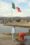 Scott poses with this fountain. There was a tile fresco behind this fountain in respect of the Mexican soldiers who died defending Northern Baja California in the war against the USA. Forturnately, that was a long time ago Ensenada – Mexico