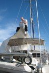 Scott went up the mast to check the rigging after the big Santa Ana blow we got on the way down from San Diego on Christmas Day. We had brought the mainsail back to Costa Mesa for some minor repairs. We took advantage of this time to do some maintenance. On Cindy’s B-Day no less! Ensenada – Mexico