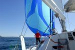Enroute to Bahia Asuncion, we got the spinnaker up for the first time. This is our biggest sail. When the wind is behind us, we fly…. Enroute Bahia Asuncion – Mexico