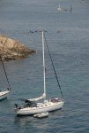 with too many boats around at Big Geiger, discretion being the better part of valor, we picked up a mooring here. We see many friends the place is packed. We sailed over most of the way, winds to 20 knots or so. We also saw 3 pods of dolphins including our first ever sighting of \”Risos\” Dolphins. They are motled and very white!…… Rare, but are seen here in So. Cal.The day was warm, the winds nice and Cindy and I are snugged in for the night.